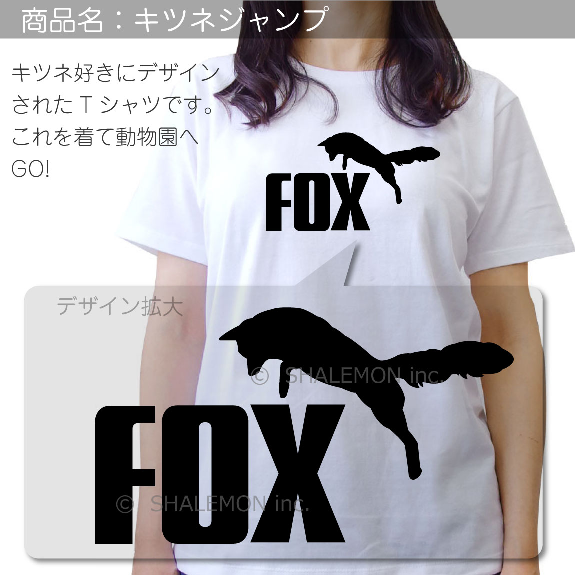キツネ Tシャツ アニマル 【 キツネ ジャンプ 選べる8カラー 】fox 赤い きつね 狐 動物園 おもしろ プレゼント 雑貨 グッズ グラス ぬいぐるみ 生地 お面 狐狼 面白い シャレもん しゃれもん